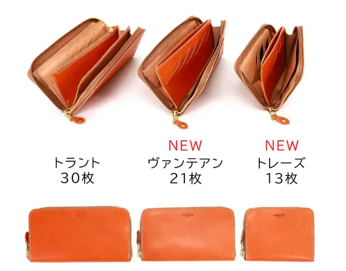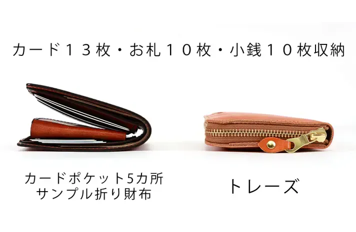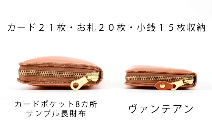 今回は21カ所のカードスペースがある長財布「ヴァンテアン」と、13カ所のカードスペースがある折り財布「トレーズ」の二つでプロジェクトに挑戦します。