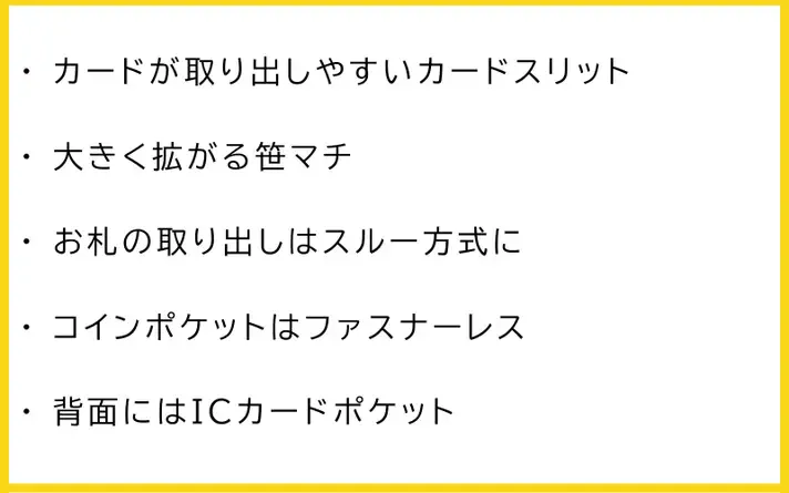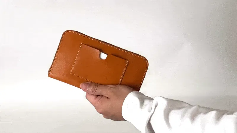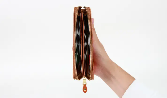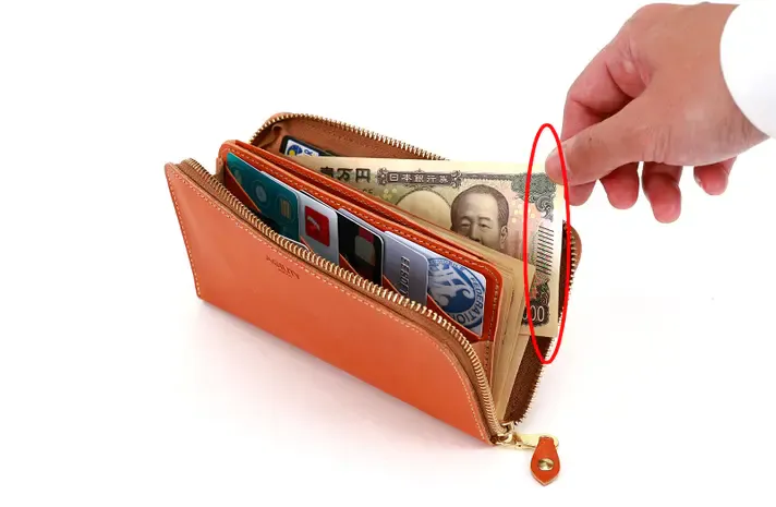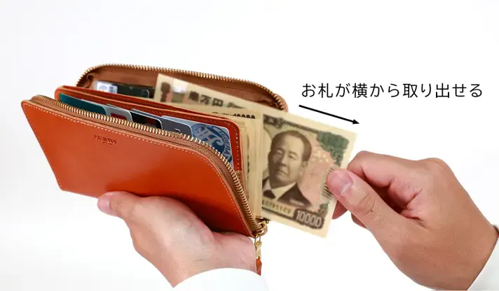 一般的な長財布は、上からしかお札が取り出せませんが、マチを外す事により横からもお札を取り出す事が出来ます。
