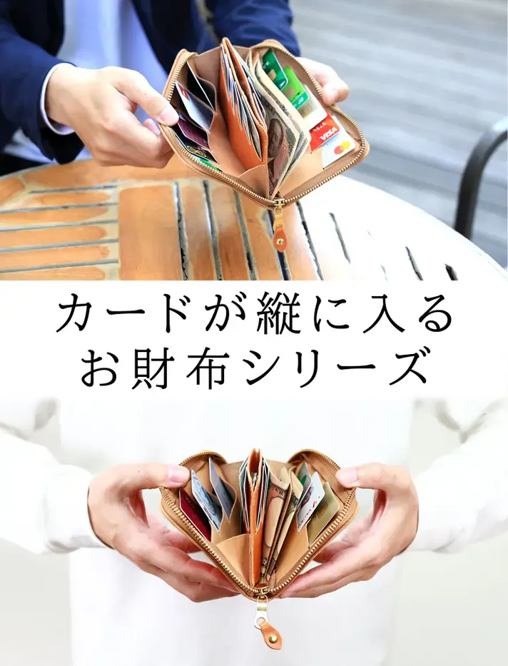 そんな悩みを解決すべく生まれたお財布が「カードが縦に入るシリーズ」です。カード収納に特化したお財布です。