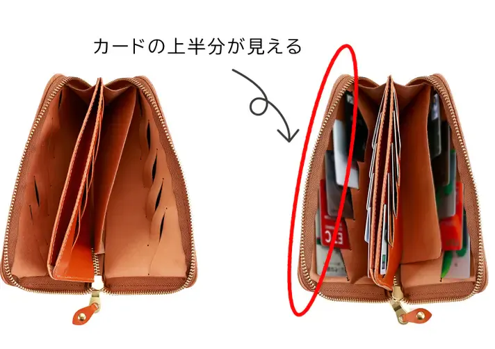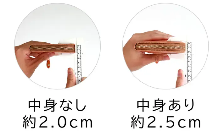 数ミリの差ですが、ファスナー分の厚みが減るので財布を閉じた際スリムに持ち歩けます。