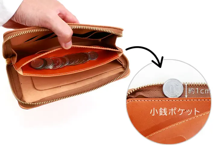 この「約1cm」という幅がポイントで1円玉よりも狭いため、どれだけ振っても「小銭ポケット」から小銭が飛び出しません。