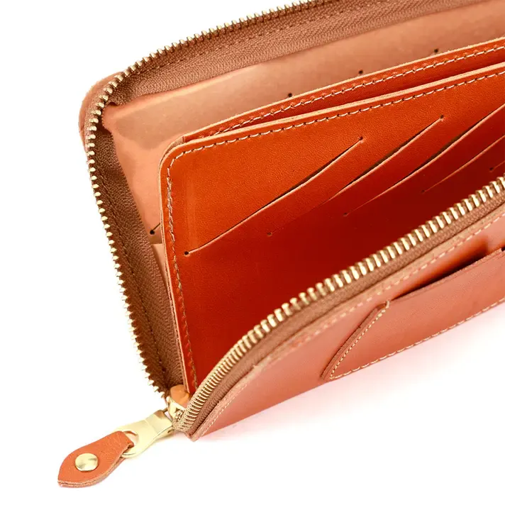 程よいオイル艶が抜群の深みを生み出す栃木レザー社が誇るオイルタンニンレザー。ベジタブルタンニンで鞣した革を、ドラムに入れて染色。
