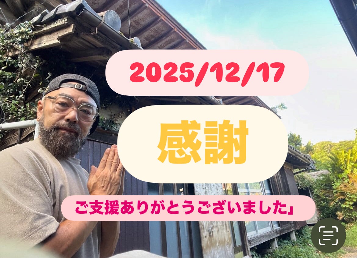 2025/12/21 16:36古民家再生プロジェクトのクラファン無事終了いたしました!目標金額も越えたご支援が集まりました。それもこれも全てご支援者様のおかげです。心より感謝、御礼申し上げます。ありがとうございました!今後は古民家を再生する、”造る”をしっかりやってまいります。その模様は、SNS,YOUTUBEで逐一進展をご報告していきますので、温かく身守って頂けたら幸いです。そして一度古民家に遊びに来てください!しっかり造ってあなたのお越しをお待ちしてます!!感謝!!KAKUEI YOUTUBE↑YOU TUBEkakuei_minamiboso↑instagram もっと見る
