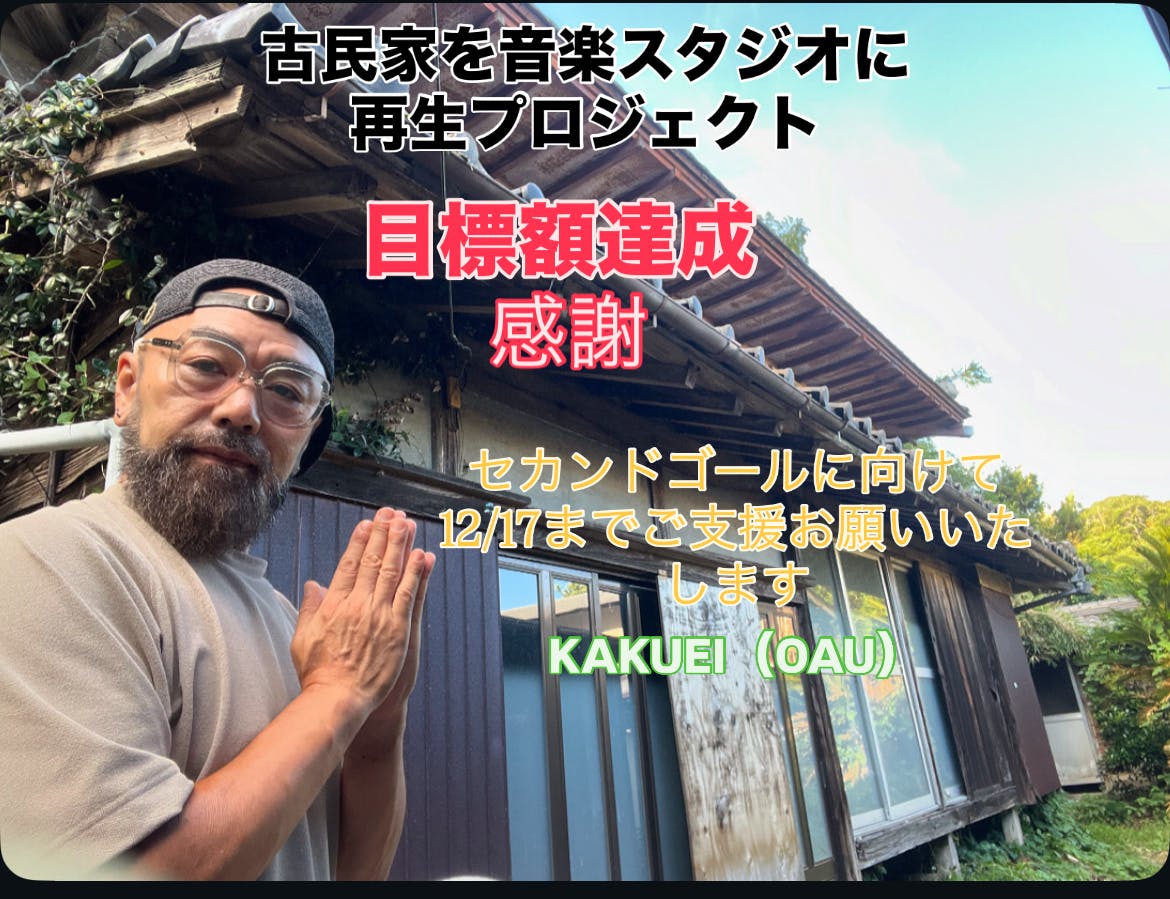 2025/11/28 10:49目標金額達成しました!!これもひとえに支援者様のおかげです。本当にありがとうございます。感謝。クラファンのご支援の終了期限が12/17(水)までありますので、セカンドゴールを設定し期限までご支援のお願いを継続します。しかし嬉しい。当初は不安ばかりでしたが、こうして結果が出ると自分の自信につながり、皆様への愛も感じ、ありがたい気持ち満タンです。まだ何も終わってないので感傷に浸る時間でなく、今後も気持ちを引き締めて古民家再生、クラファンに注力していきます。感謝 KAKUEI もっと見る