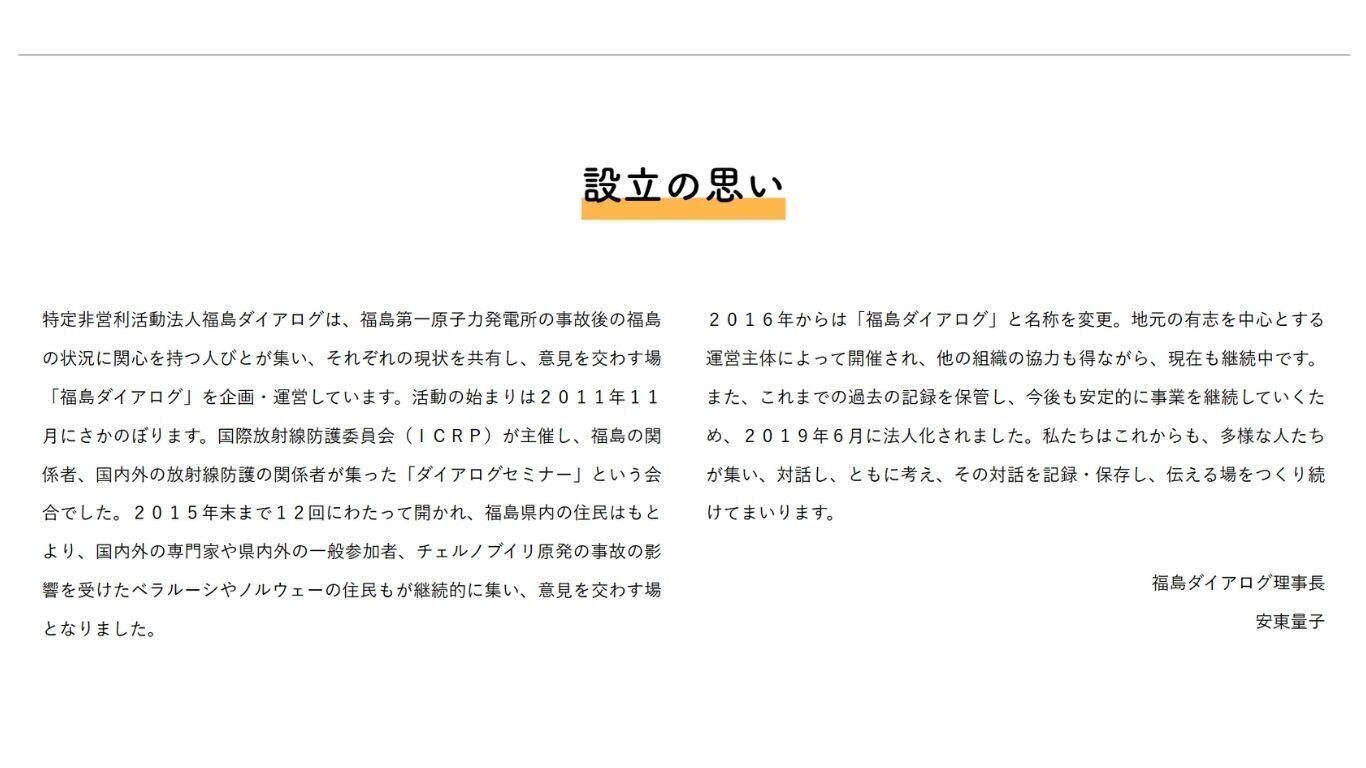 福島県の現状について国内外に対し公平性や透明性を確保した対話の場を日本語と英語で発信し、また、さまざまな立場の方の参加を促すことができるように、クラウドファンディングにチャレンジします。