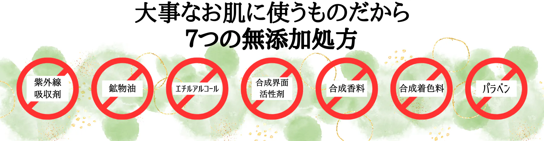紫外線吸収剤不使用(紫外線散乱剤使用)、防腐剤不使用、合成香料不使用