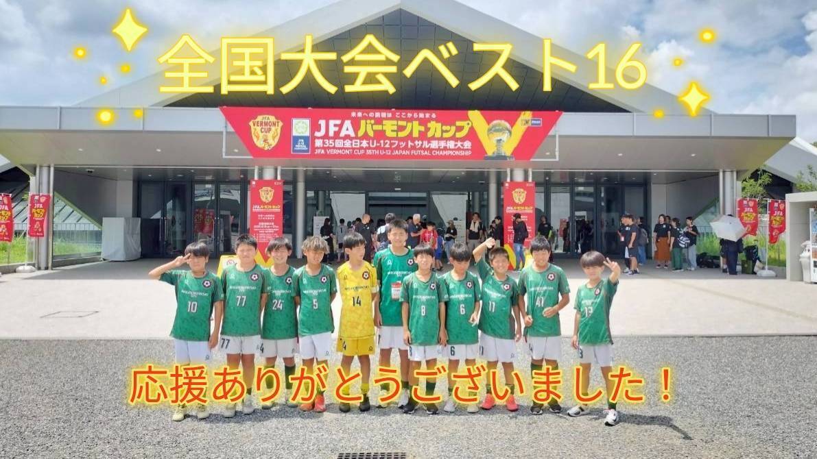 2025/09/08 23:088月15日~17日に駒沢オリンピック公園総合運動場 で開催された「JFAバーモントカップ第35回U-12全日本選手権大会」に出場してきました!【結果】〈第1ラウンド グループJ〉vs青森FC(青森県)7-4 winvsカティオーラFC(大分県)6-4 winvsソルティーロセイリョウFC(石川県)5-3 win◯予選1位通過◯第1ラウンドから白熱の試合が続きましたが、なんとか3試合とも勝ち切ることができ、決勝ラウンドに駒を進めることができました。〈決勝ラウンド〉ラウンド16 vsトリアネーロ町田(東京都)4-7 lose◯最終結果 ベスト16◯決勝ラウンドのラウンド16の対戦相手は東京都のトリアネーロ町田さん。サッカーで全国大会優勝の経験もある強豪チームです。相手サポーターの大声援にも怯むことなく、いつも通りのプレーで戦い、前半は一時同点に追いつくものの、1点ビハインドの2-3で折り返し。後半もその勢いのまま進めたかったですが、開始早々に立て続けに失点し、最後まで誰も諦めないプレーを見せてくれましたが、最終結果は4-7で敗戦。最終結果はベスト16となりました。敗戦とはなりましたが、最後までよく戦っていたと思いますし、同じ関西のチームの選手達の力強い声援が彼らを突き動かしてくれました!普段は良きライバル。全国大会ではライバルを超えた絆が生まれました。素晴らしい経験に本当に感謝です。彼らの挑戦はまだまだ終わりません!次は冬の全日に向けて突き進んで行きます!今後共応援よろしくお願い致します。 もっと見る