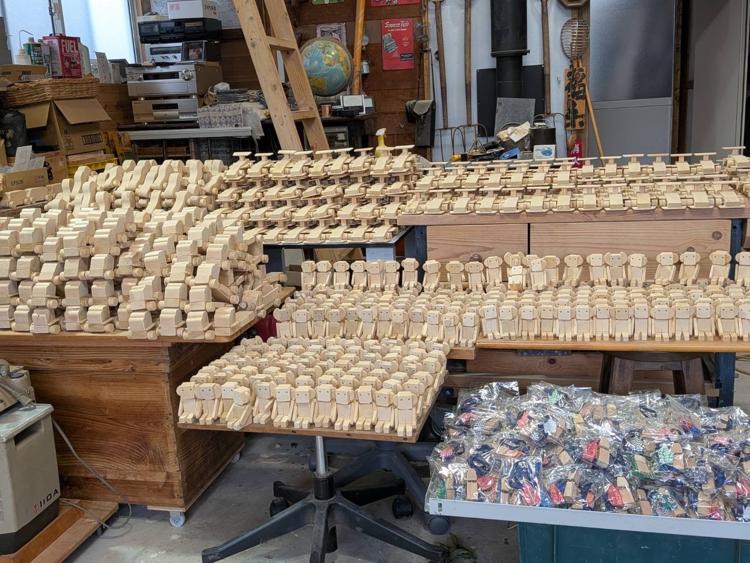 中山さんの噂を聞きつけ、興味が湧き参加する事になりました。小浦さんは自身の作業場でおもちゃ作りの経験があり、作業環境に困っていた中山さんと一緒に自身の作業場でおもちゃ作りを始める。強く中山さんの理念に共感し、遠くに住まう子供達への想いと祈りをおもちゃに込める活動をされています。