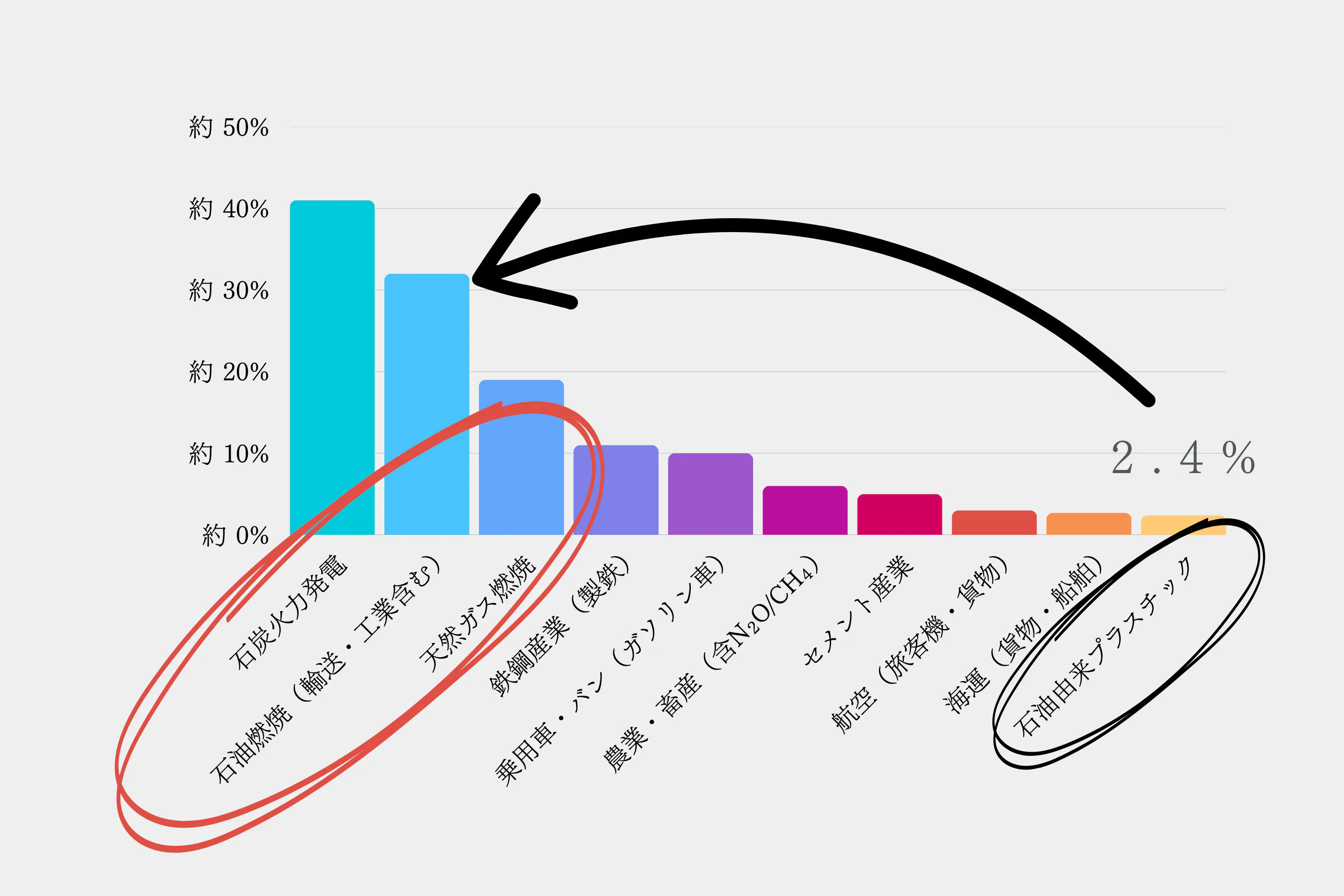 排出源CO₂排出量(年間)プラスチックとの関係
