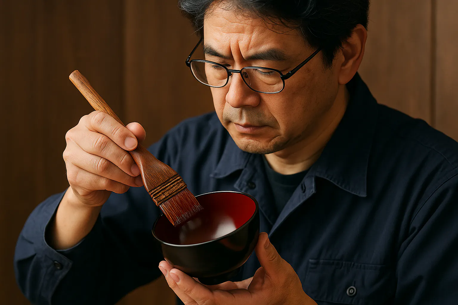 私たちの器は、すべて機械ではなく、職人の「手」で塗られています。漆は湿度・温度・塗りの速さ・角度すら影響する、生きた素材。だからこそ、1枚ごとに**表情や艶が微妙に異なる「一点もの」**になります。