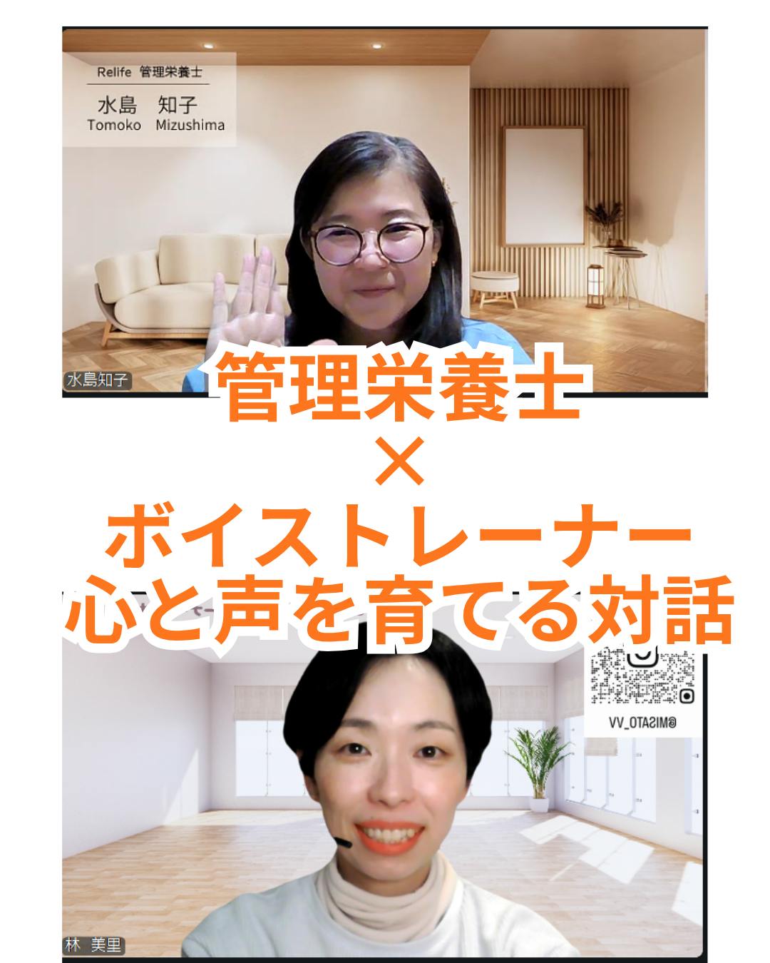 本日は、管理栄養士として睡眠改善のサポートをされている水島さんとZoomでお話ししました。食と睡眠、そして「声」とのつながりについて深く共有でき、とても学びの多い時間でした。日々の健康の土台を整えることが、良い声・良い表現にもつながると改めて実感しました。