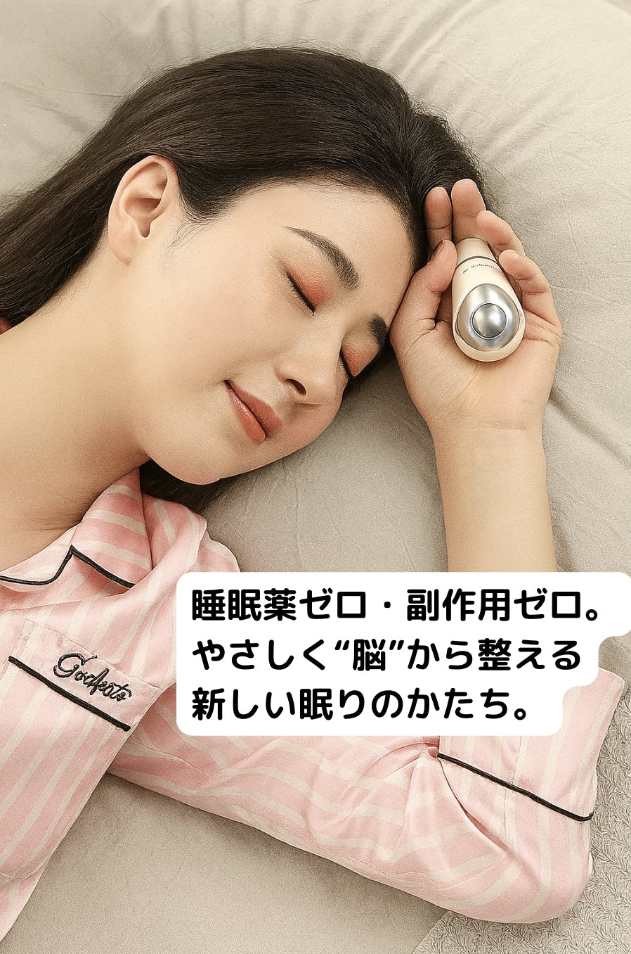 本製品は、医療現場でも使用されているCES(頭蓋電気刺激)技術を応用。手のひらに流れる微弱なマイクロ電流が、脳内の神経伝達物質(セロトニンやメラトニン)に働きかけ、自然なリラックス状態を作り出します。