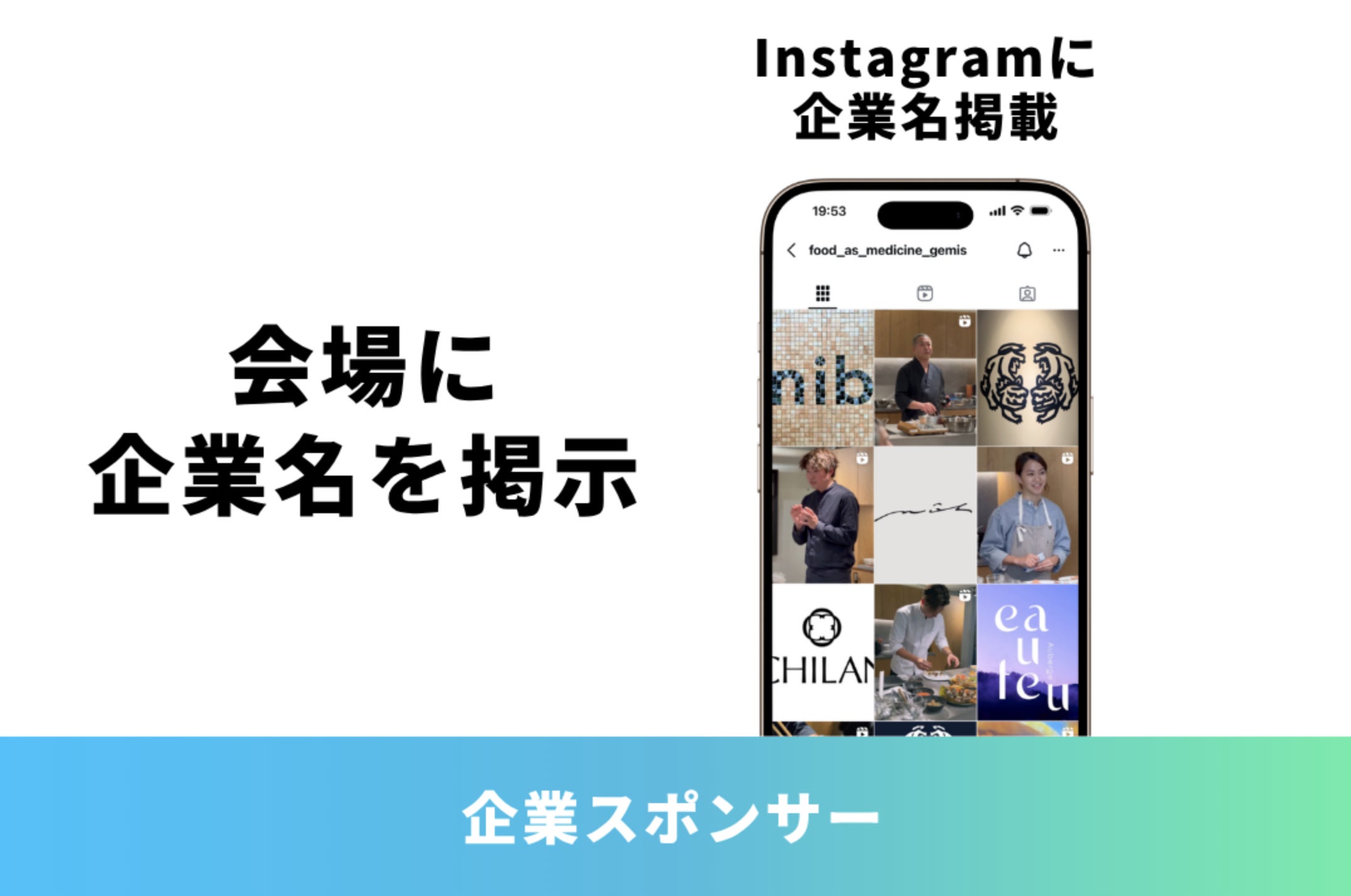 《食育英語キャンプ》Food as Medicine Camp by GeMISの企業スポンサーになれる権利です。企業スポンサーとして会場に企業名掲載、企業名をGeMISのInstagramで紹介させていただきます。