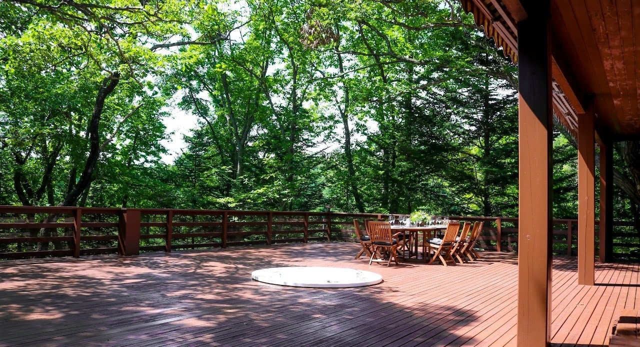 今日の写真は、みんなで泊まる施設のテラスです。美味しい夕食の後に、ファイヤーピットを囲みながらの星空観察レクチャーを予定しています!