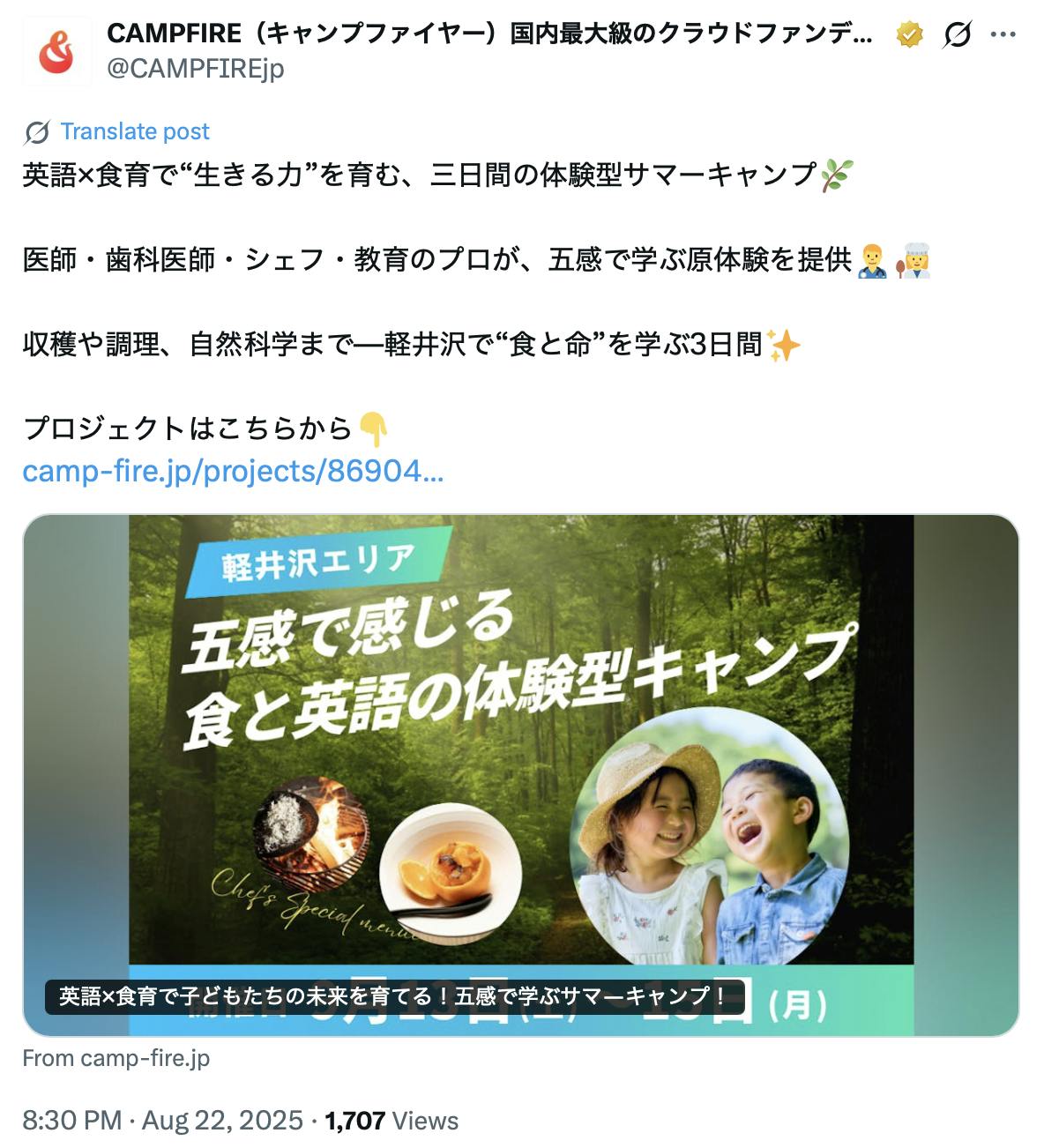 こんばんは、GeMISです。先月より挑戦しております英語×食育で子どもたちの未来を育てる!五感で学ぶサマーキャンプ!のクラウドファンディング、終了まで残り8日となりました。これからの社会をより良くできる健康な大人となるために最高の環境でウェルビーイングなライフスタイルの体感を身体と心を動かしながら様々な分野の専門的知識に触れる、楽しい時間が待っています。澄み渡る空気土の湿ったにおい水しぶきを近くで感じ森の明るさに浸りながら燃える火を眺めて輝くこどもたちの目豊かな自然の中で感覚と頭脳が呼び覚まされ、最適なバランスの学習時間が始まります。今日の写真は、キャンプ当日に皆様に体験頂く「醤油の天地返し」の様子です。こちらのレアなハンズオンは、醤油造りに欠かせない重要な工程のひとつです。このように、子どもも大人も楽しめるレクチャーの数々を準備しています。さらに多くの方々にこのプロジェクトが広がるよう、引き続きのご支援と応援のほど何卒宜しくお願い申し上げます!⬇GeMIS公式インスタグラムはこちらから⬇GeMIS