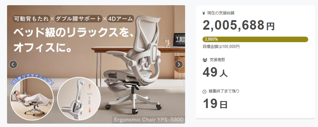 皆さま、こんにちは。この度は自在にフィットし、贅沢なリラックスを実現するワークチェア「YPS-S800」にご支援頂き誠にありがとうございます!