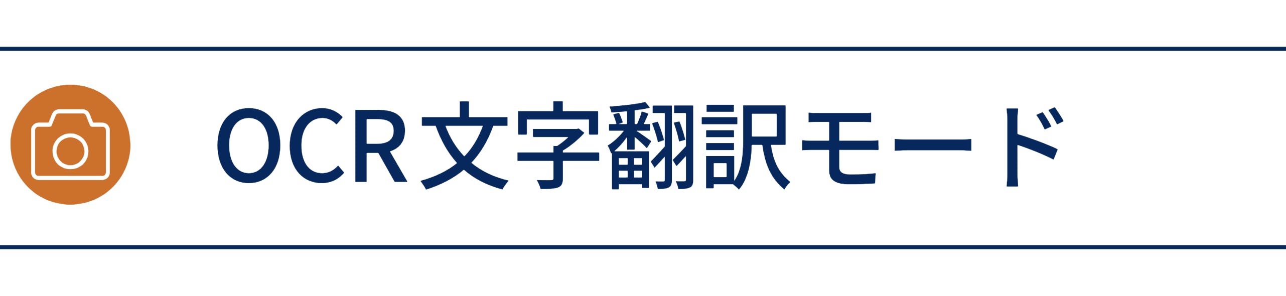スマホのカメラで外国語の文字をOCR(光学式文字読取)でテキスト化して翻訳する機能モードです。