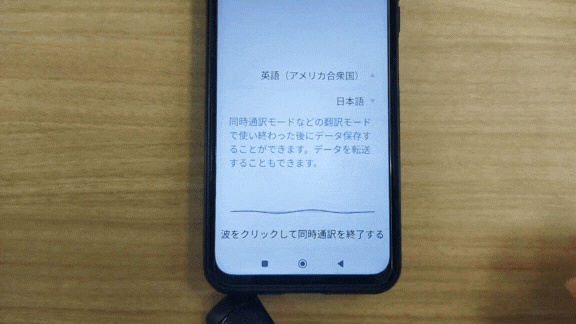 スマホのマイクとスピーカーを使用し、マイクに話した内容を指定した言語に翻訳してスピーカーから音声で流す機能です。