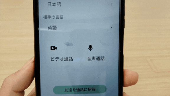 ビデオ通話を選択し、自分と相手の言語を指定。SNSやメールで招待リンクを送付。