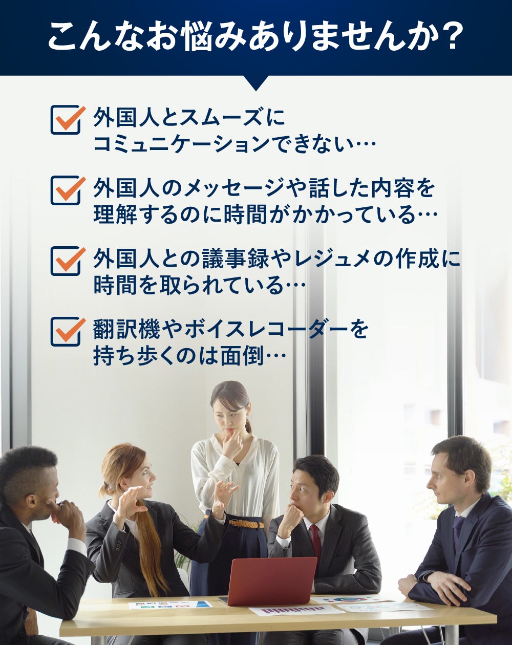 外国人とのコミュニケーションでは、シーンごとに必要な翻訳能力が異なります。