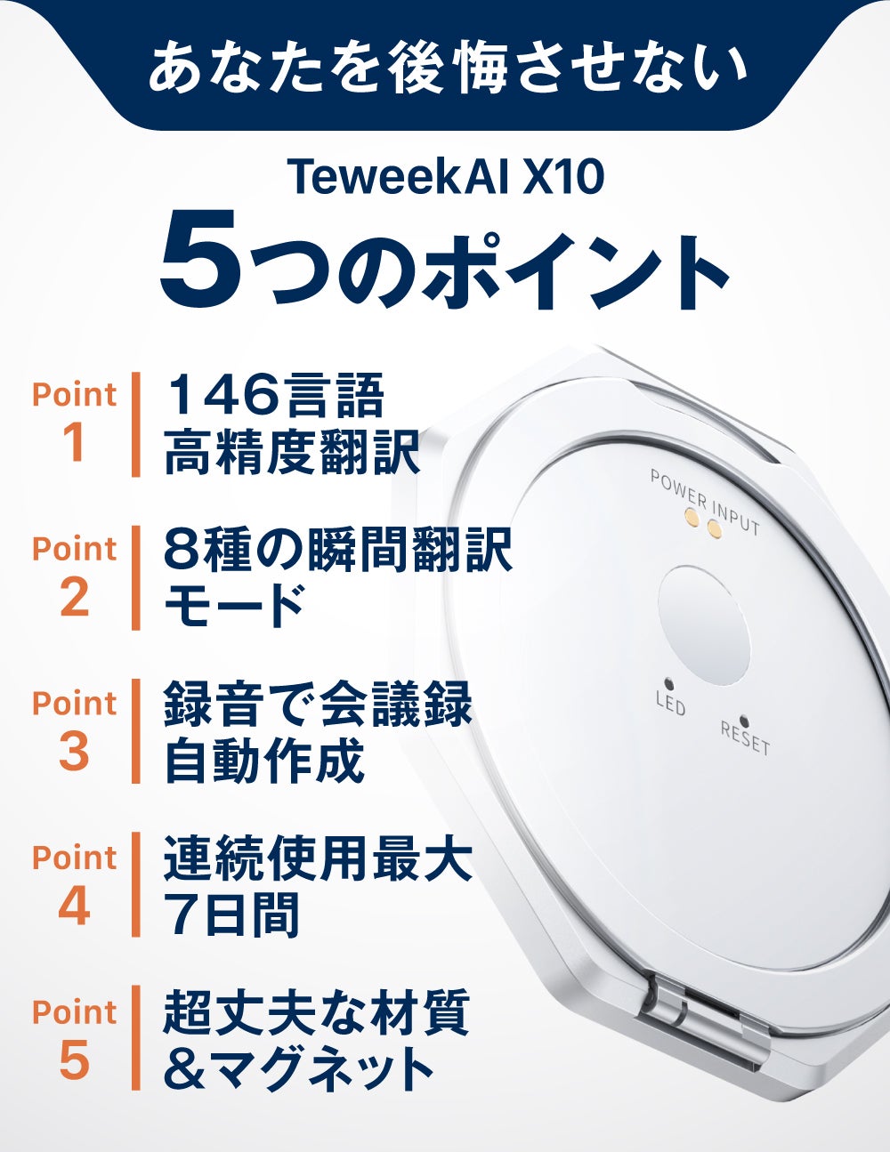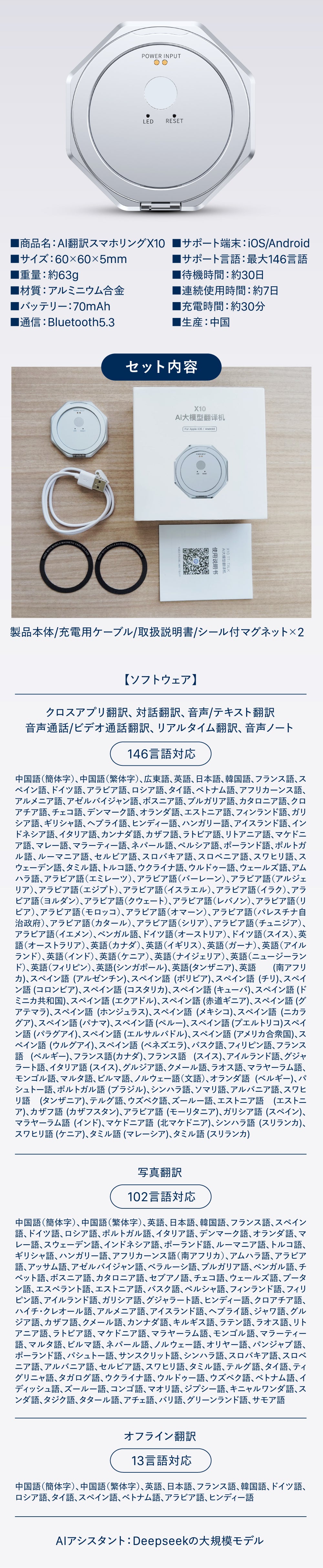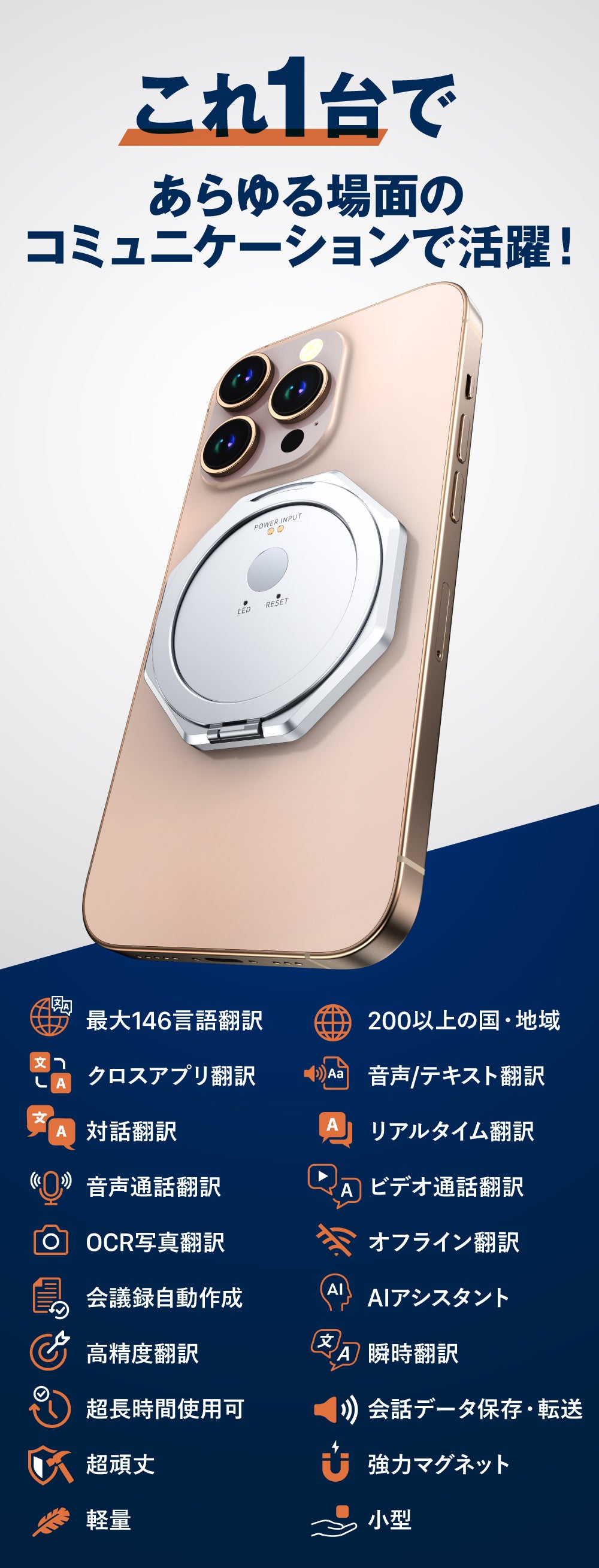2026/03/06 07:00\\本日より限定販売スタート//1台9役!スマホリング型AI翻訳機「TeweekAI X10」公開!スマホに装着するだけで、ビジネスも旅行もスムーズに。✔ 最大146言語対応(対話/リアルタイム翻訳)商談・接客・海外会議・旅行先の会話までこれ1台でカバー。✔ SNS・チャットへ翻訳文を直接入力外国人とのやり取りもスピーディーに。✔ ビデオ/音声通話翻訳オンライン商談でも言語の壁を感じさせません。✔ OCR写真翻訳(102言語)資料やメニューを撮るだけで瞬時に理解。✔ オフライン翻訳(13言語)海外出張や旅行先でも安心。✔ 音声ノート機能会議内容を自動文字起こしし、議事録作成を効率化。Bluetooth5.3搭載、最長7日間使用&約30分で充電!軽量ボディでリング兼スタンドとしても活躍。数量限定、最大43%OFFの早割実施中!先着順のため会員登録もお早めに▼https://costory.jp/sign-in▼詳細はこちらhttps://costory.jp/cf-published-sku-groups/1041273138 もっと見る