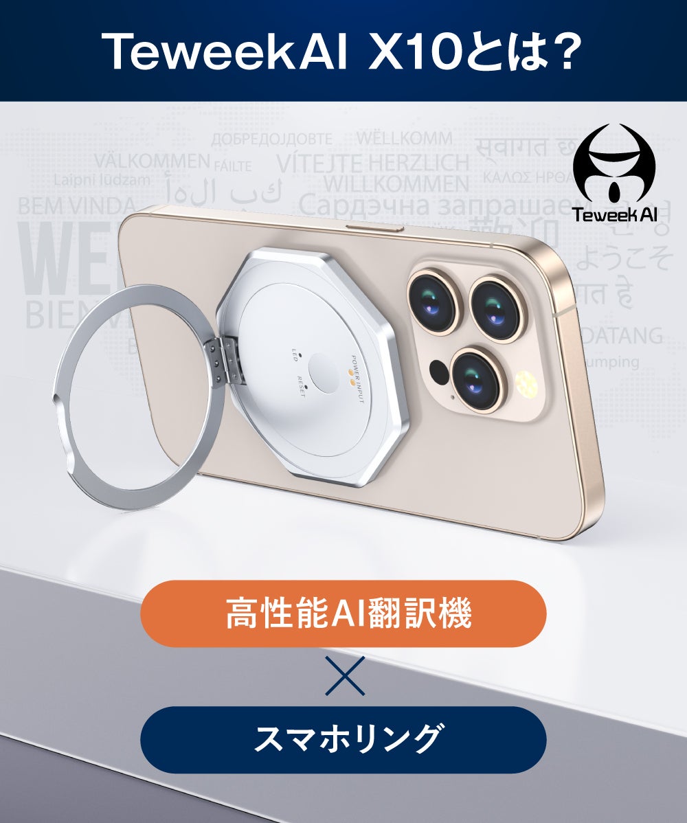 TeweekAI X10とは、あなたが普段使い慣れているスマホに取り付けるだけで、高性能AI翻訳機になるスマホリングです。