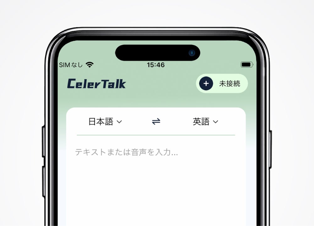 3. 緑に点滅されている状態で、CelerTalkアプリ画面の右上の「未接続」を押します。
