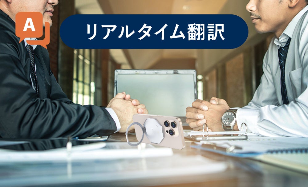 翻訳したい相手の音声をリアルタイムで翻訳した音声とテキストを生成する同時通訳級の翻訳機能です。