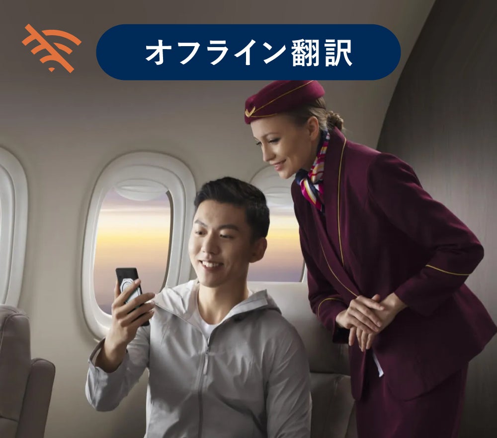 飛行機の機内など、インターネットに接続できない場所でも使える翻訳機能です。