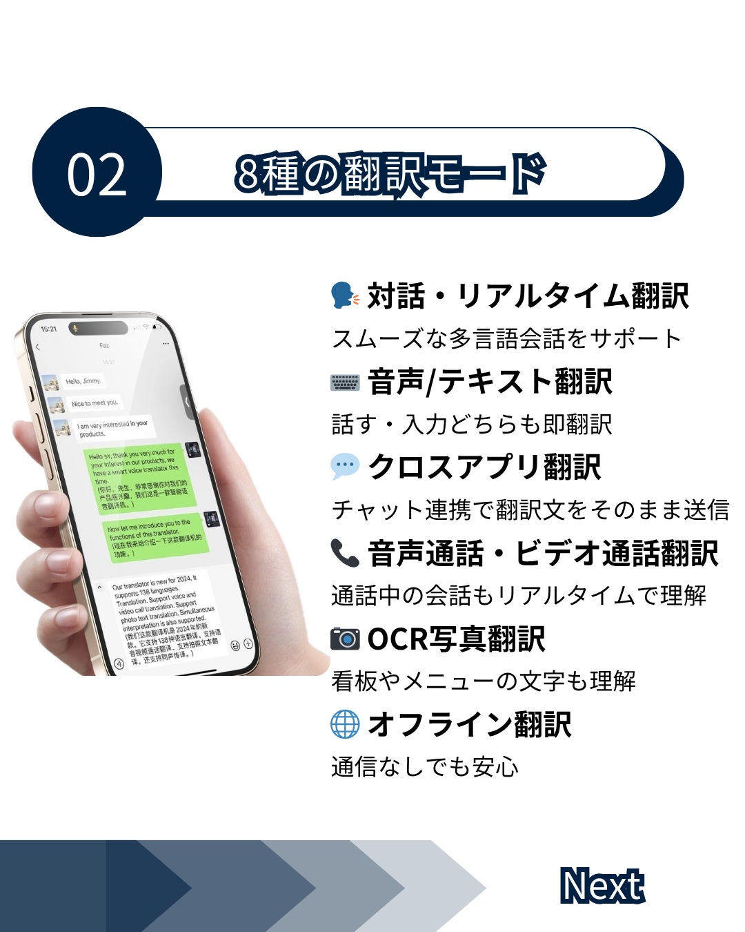 今回は、あらゆるシーンに対応できる「8種の翻訳モード」をご紹介します▼
