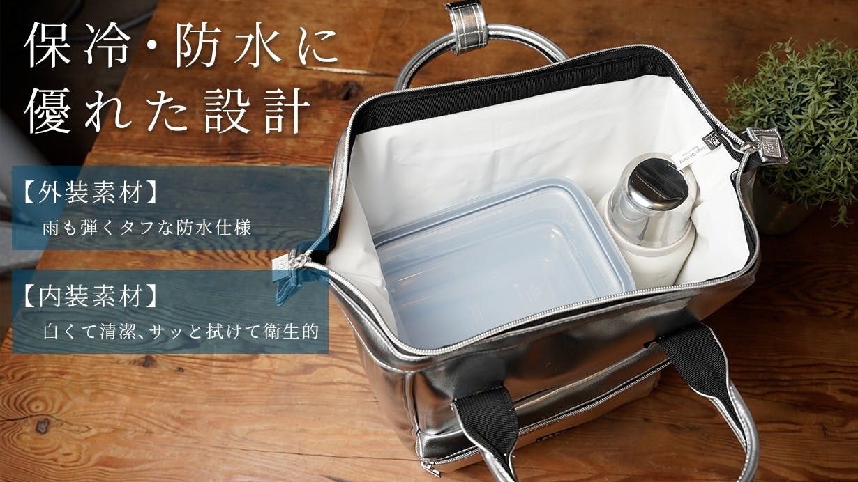 雨や汚れに強くて安心。保冷力に優れた3層構造で、ランチも買い物もスタイリッシュに。