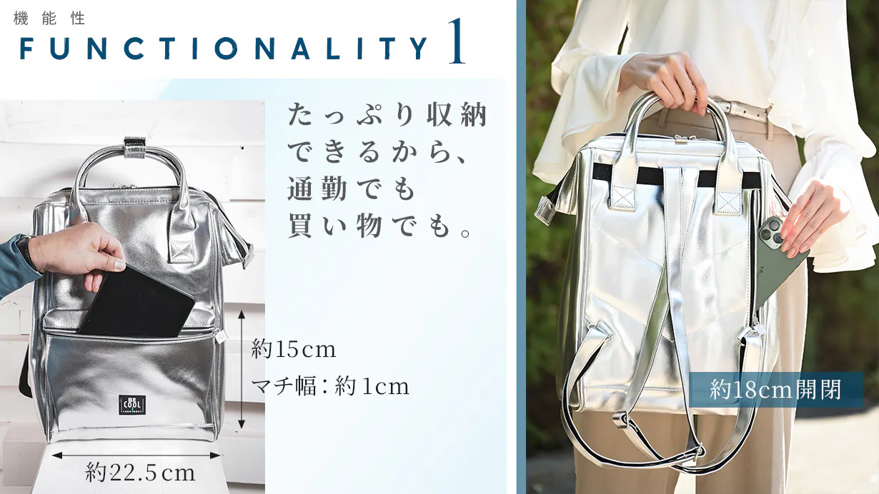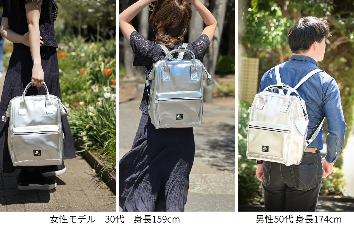 自立して詰めやすい。性別を問わず、誰にでも似合う。そして、未来感のあるこのデザインは、背負うだけで「それ、どこの?」と聞かれる存在です。