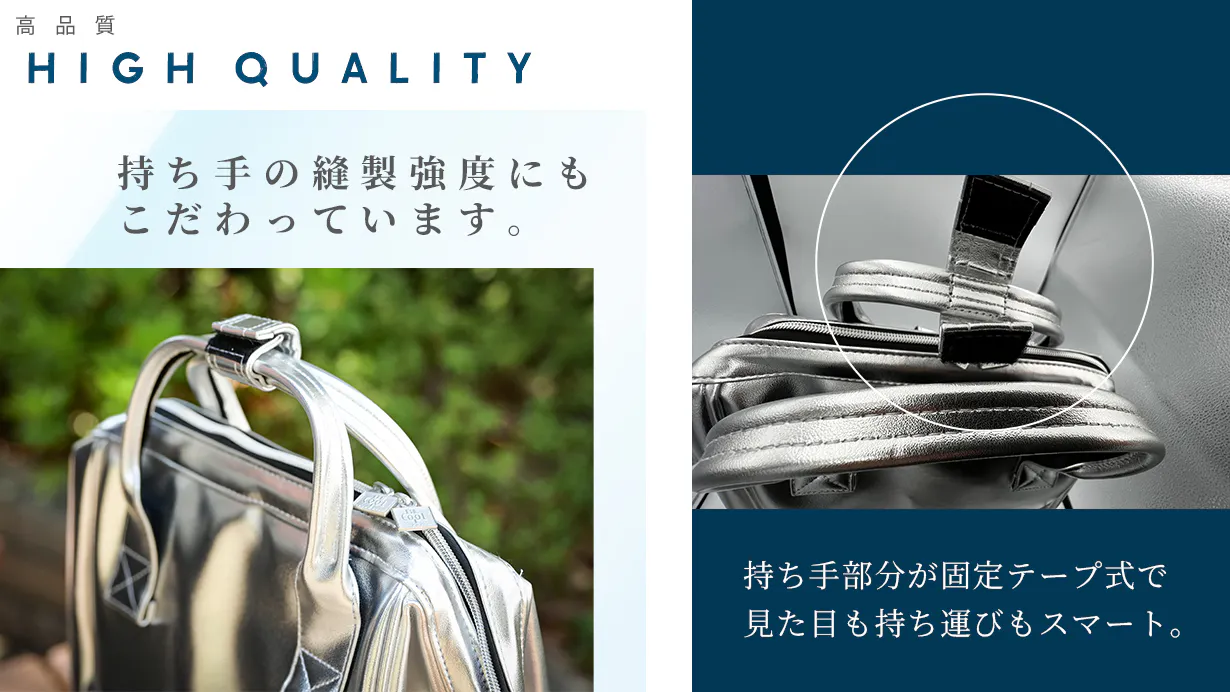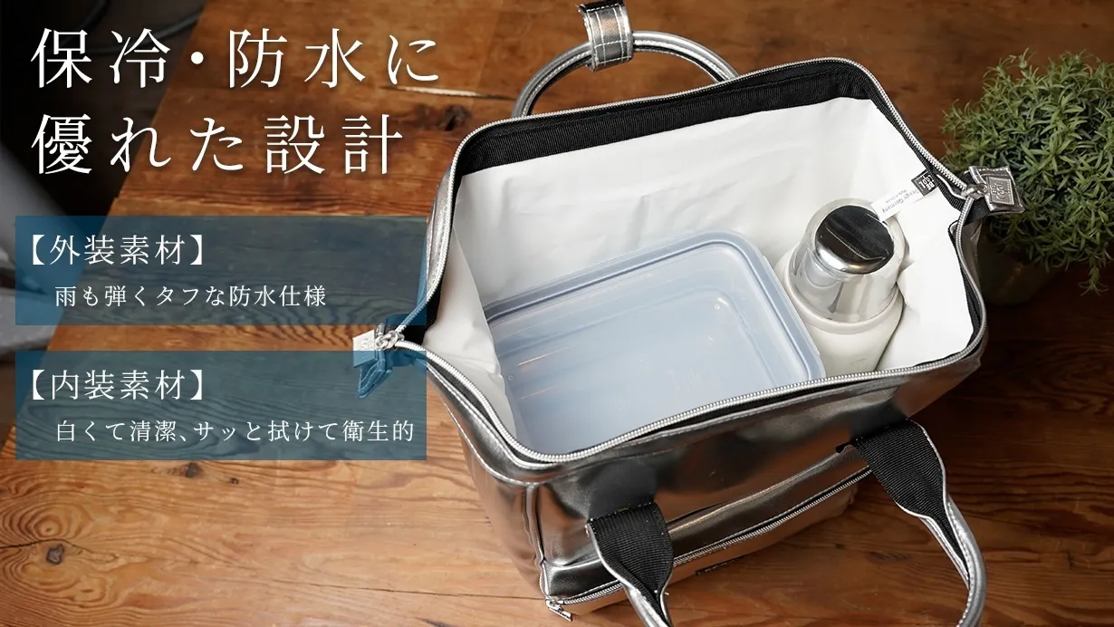 雨や汚れに強くて安心。保冷力に優れた3層構造で、ランチも買い物もスタイリッシュに。