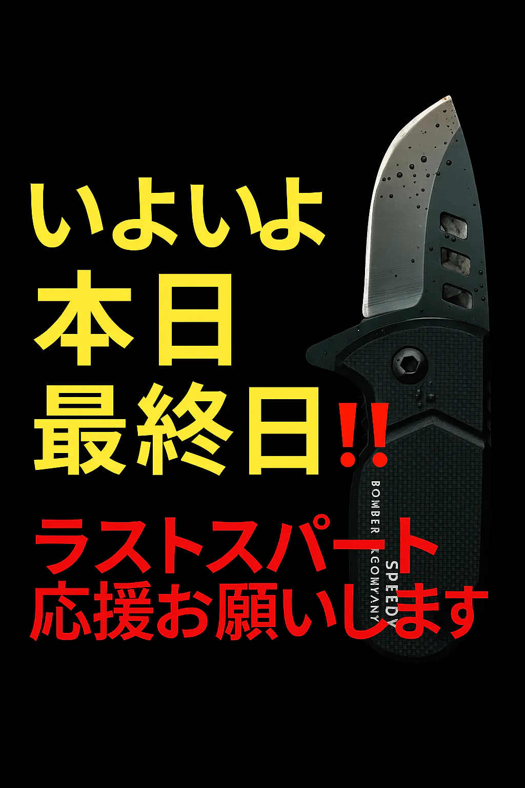 たくさんの応援をいただいてきた「SPEEDYナイフ」プロジェクトも、いよいよ本日が最終日となりました!