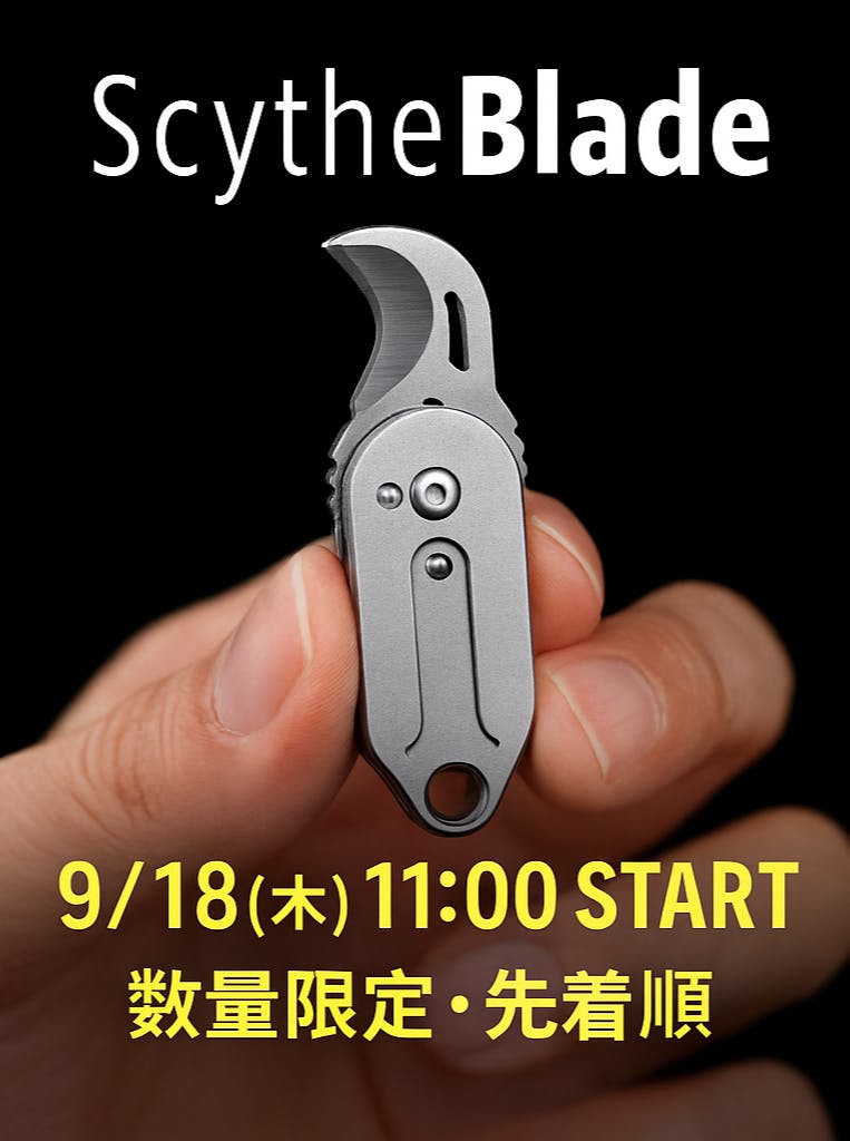 【本日11:00】より、新たな超小型チタンナイフ 「Scythe Blade(サイスブレード)」 がmachi-yaにて公開となります!