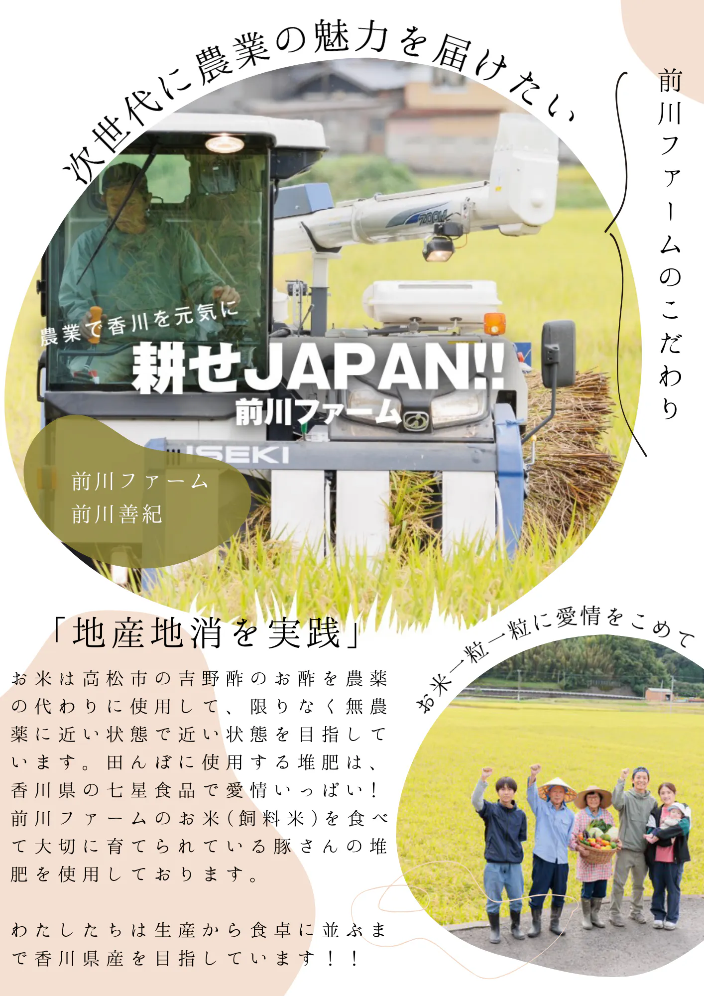 香川県を「うどんだけ」と言われないよう、もっと米作りを盛んにしたい。日本全体を私たち次世代が耕したい。そして農業が抱える社会的問題を解決すべく、前川ファームは2020年に「耕せJAPAN‼︎」というプロジェクトを発足させました。