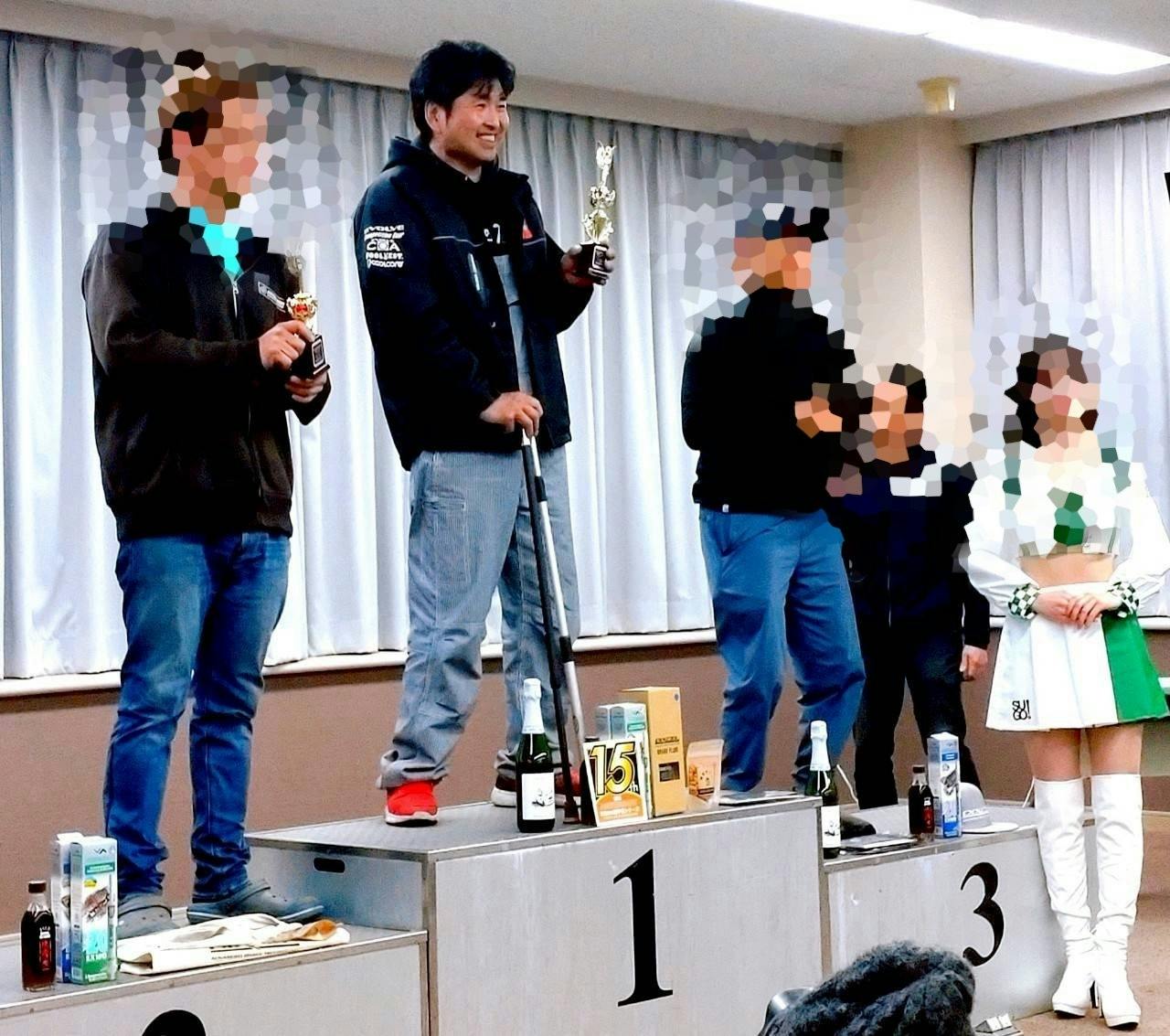 願いは届きました。復帰後初のクラス優勝!最高の笑顔が戻ってきた。師匠の大塚氏や村松氏も大喜びだった。