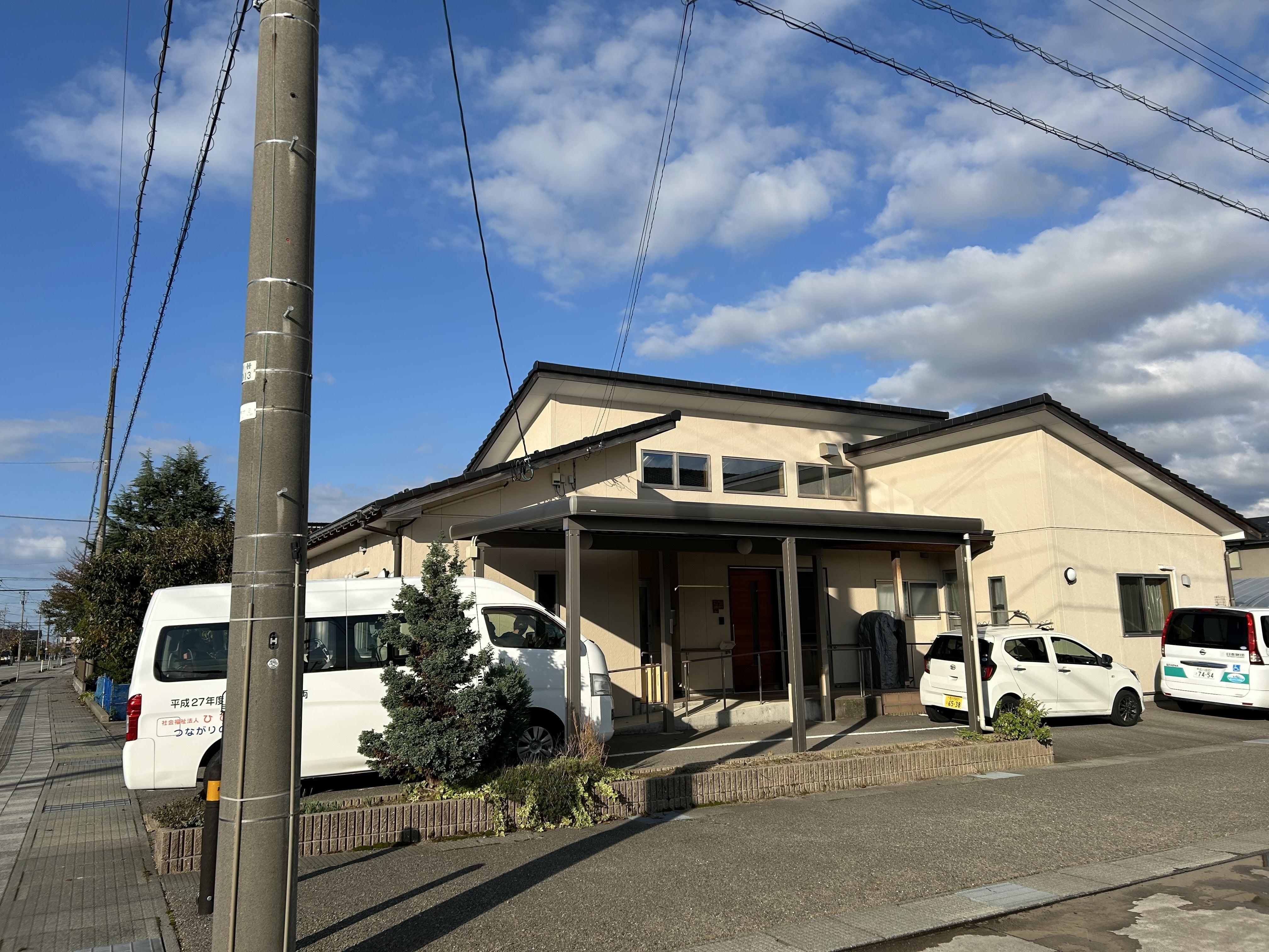 各事業所とも、石川県白山市松任地域の住宅地の中や地域の小・中学校の隣などに位置しており、まさに地域の中に根を下ろして活動をしています。