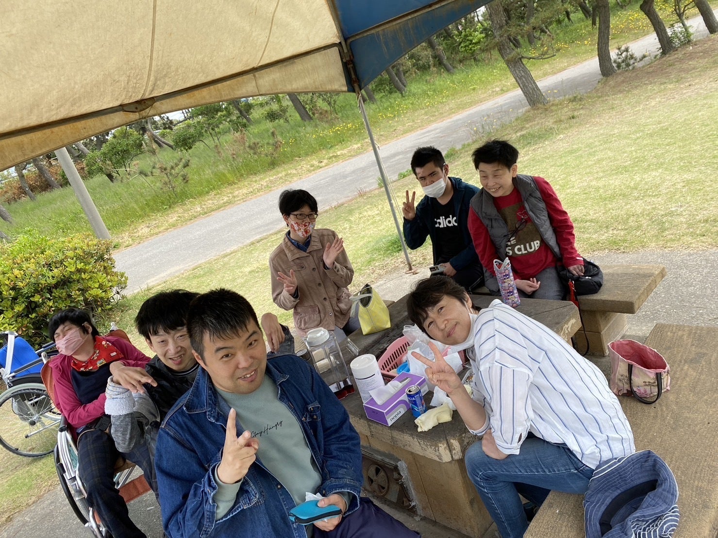「つながりの家」「すーぷる」には利用者45名と職員が、毎日賑やかに活動に励んでいます。(下の写真はレクレーションで公園の昼食の様子)