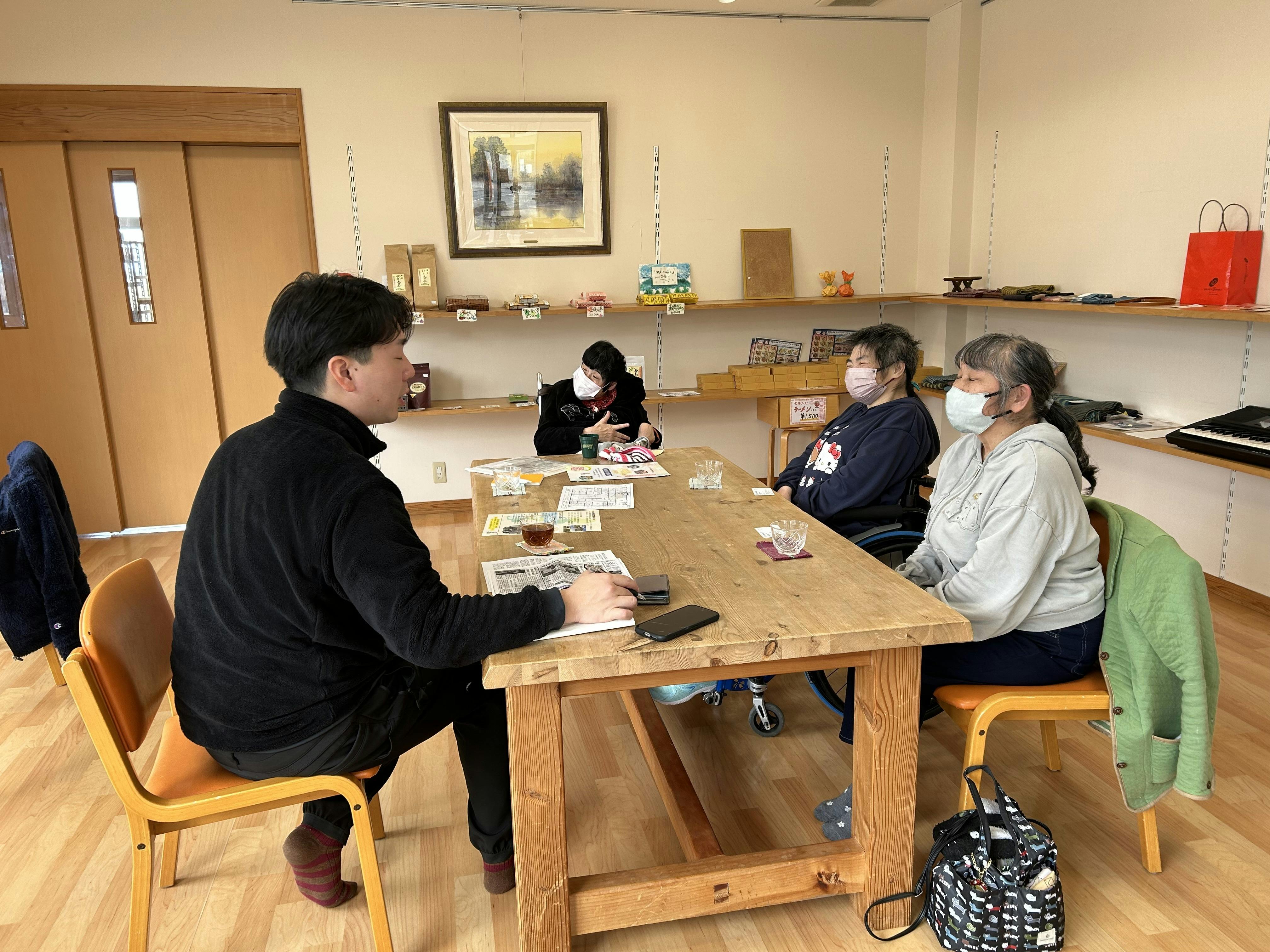 私たちは新聞紙やアルミ缶、牛乳パックを回収していますが、それらを事業所に直接持って来てくれる近所の方々がおり、私たちの活動が地域に根を張っていることを感じ嬉しく思っています。また、イオン松任店で週に一度スペースをお借りして商品の販売をさせていただいてます。