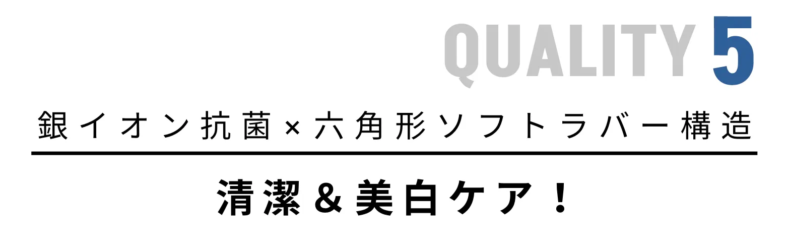 この歯ブラシは、銀イオン抗菌技術を使い、銀イオンを六角形のソフトラバーにしっかり閉じ込めています。
