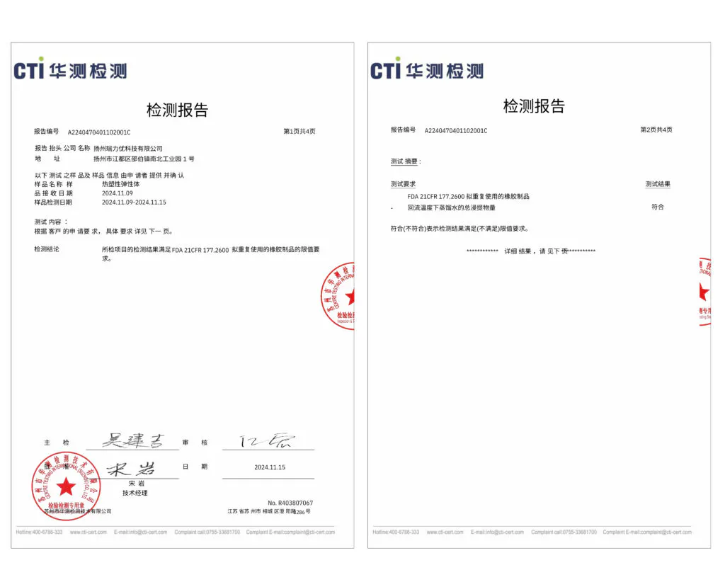 この製品は、再利用できるゴム製品の規制基準を満たしているか確認するため、蒸留水を使った浸出テスト(リフローテスト)が行われました。
