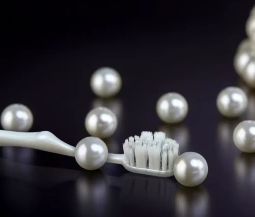 パールエッセンス(白色ブラシ)は、複数のホワイトニング成分を豊富に含み、歯の内部にまで浸透し、コーヒーや紅茶などの着色汚れを分解。本来の歯の白さを徐々に取り戻します。