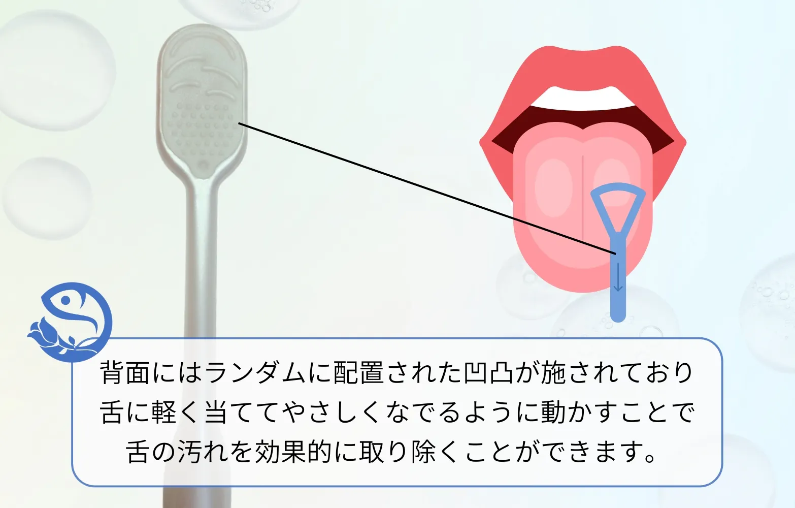 その部分で舌を軽くなでるだけで、舌苔がスッと落ち、舌もすっきり爽快に。