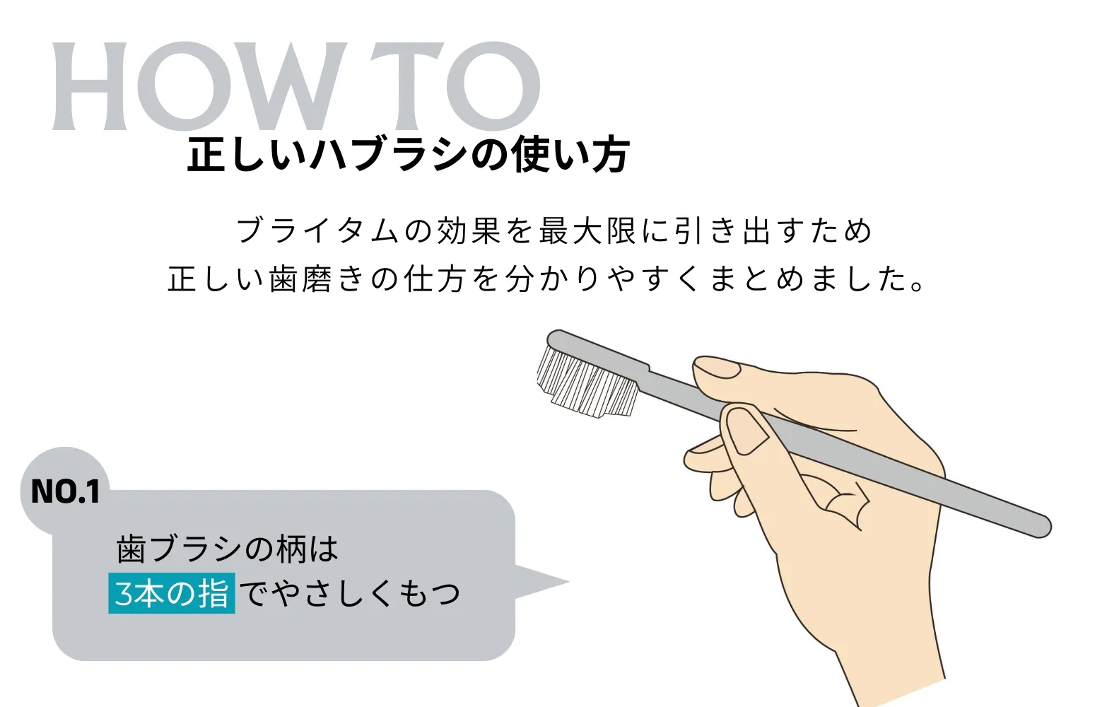 毎日の歯磨き時に『ブライタム』を使用してください。朝と夜、1日2回の使用でOKです。