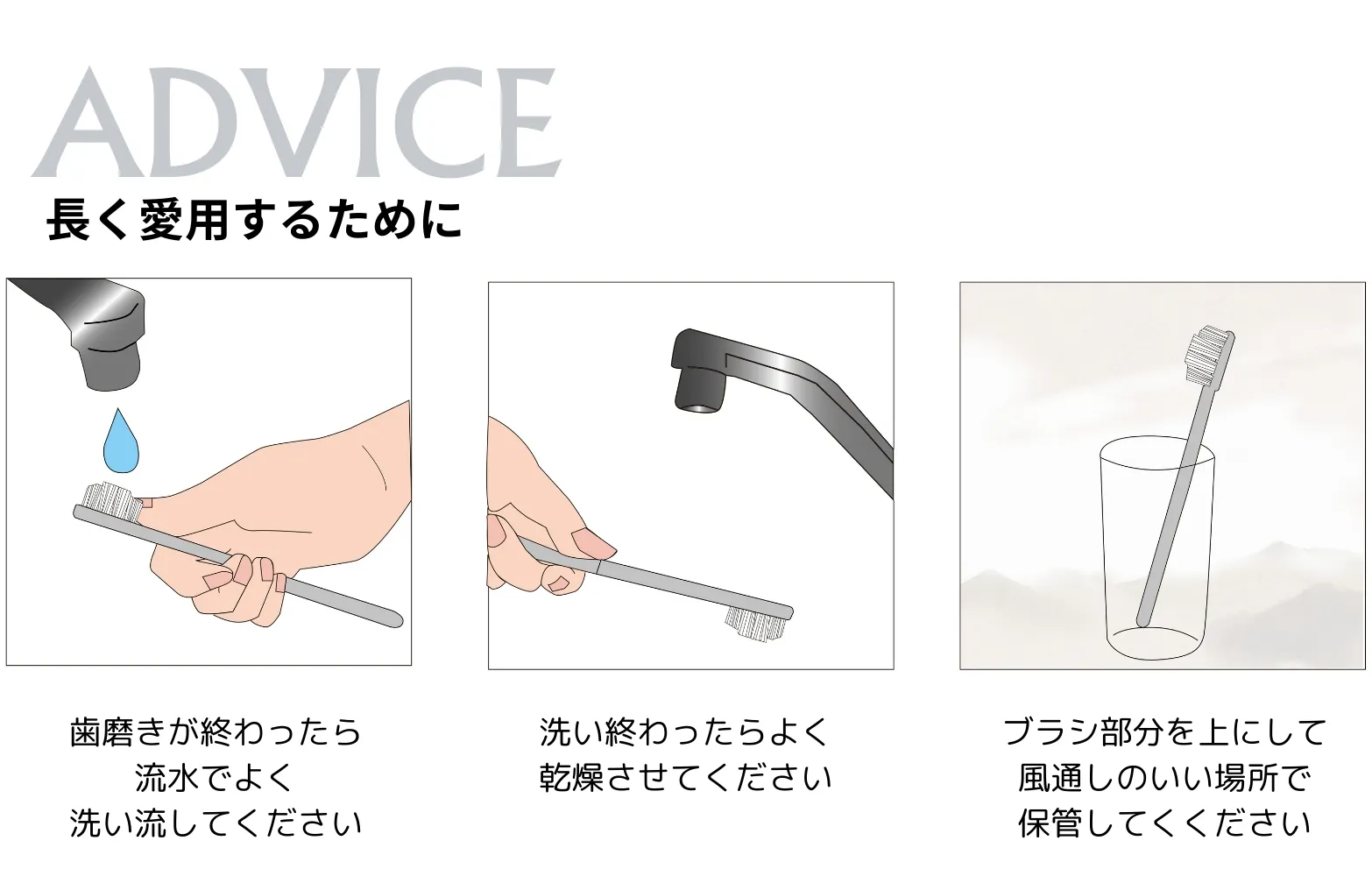 そこから少しずつ銀イオンを放出することで、ブラシ毛に菌が増えるのを防ぎ、歯ブラシをいつも清潔に保ちます。