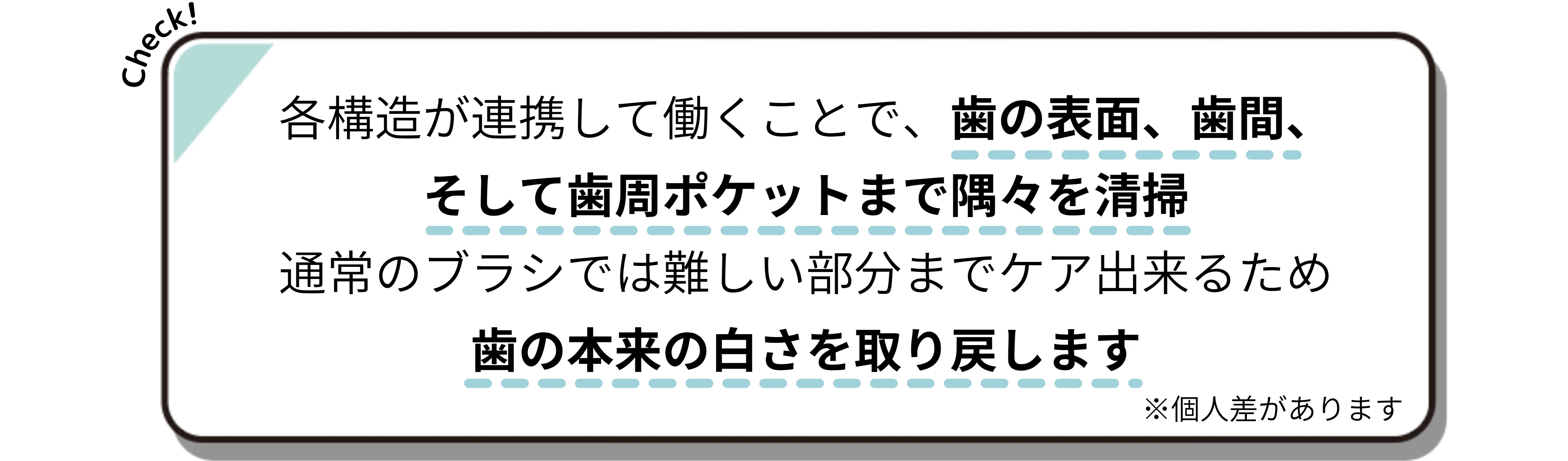 ステイン(着色汚れ)もしっかり落とし、歯の美白もサポートしてくれます。清潔さと美しさ、どちらも叶える構造です。