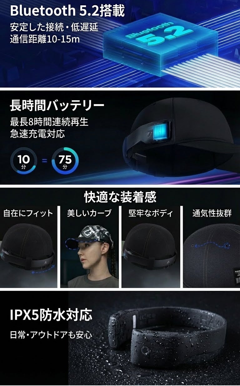 2026年4月から自転車イヤホン走行規制が強化されることに伴い、オープンイヤー型のイヤホンへの関心が高まる今。オーディオブランドHAKIIから、「帽子に着ける」という全く新しい発想のイヤホンが登場しました。