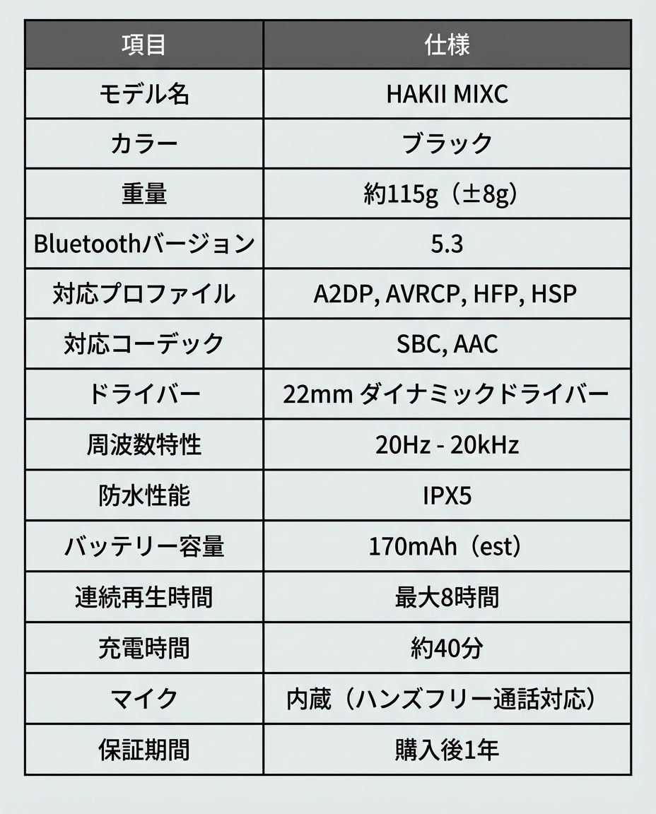 A:耳を塞がないオープンイヤー型のため、周囲に音が全く漏れないわけではありません。しかし、HAKIIシリーズは音漏れを最小限に抑える設計となっております。一般的なイヤホンと同程度か、それ以下の音漏れと考えていただいて差し支えありません。公共の場所でのご使用は、音量にご配慮ください。