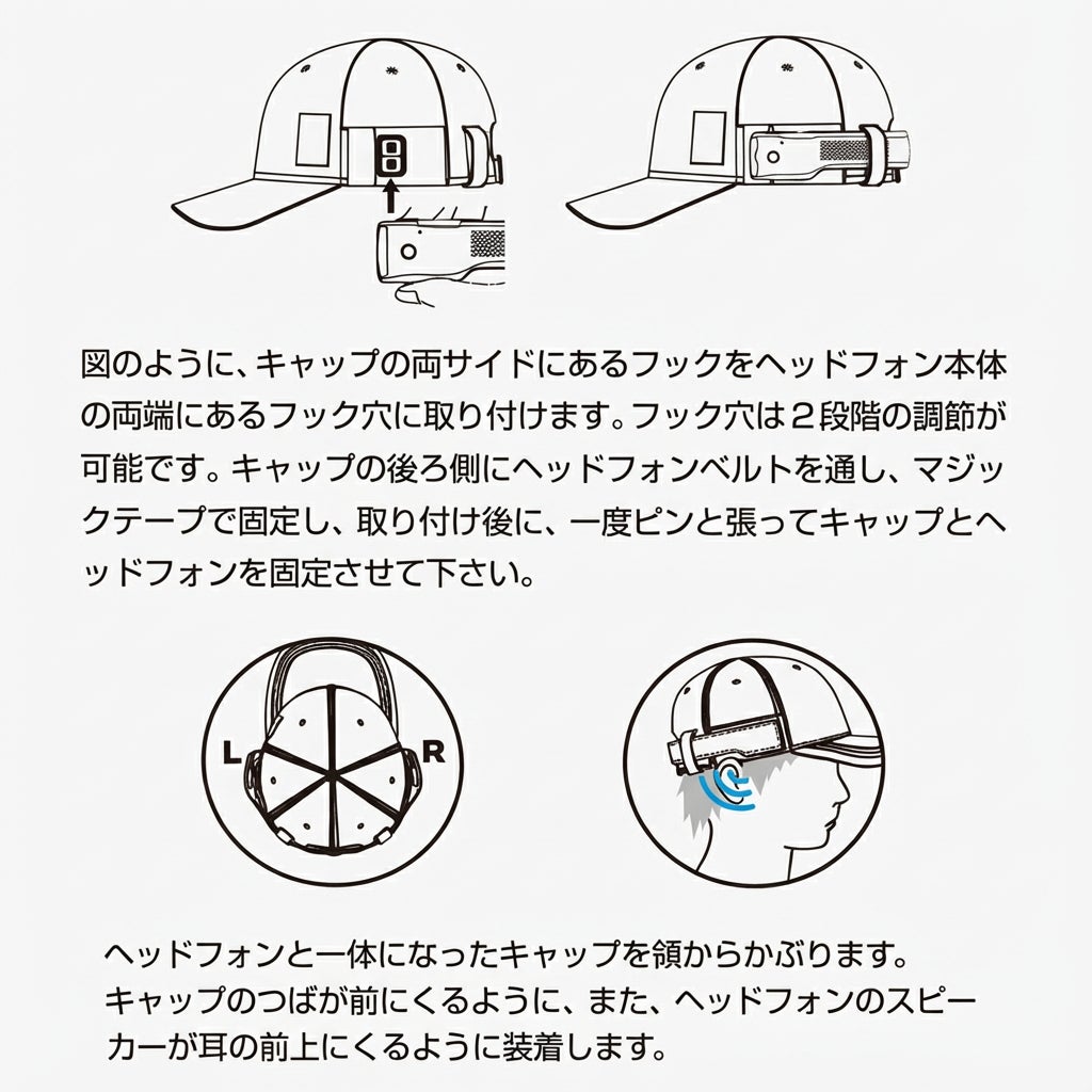 帽子にさっとつけるだけ。 たったそれだけで、外で聞く音楽が今までよりも少し安心して過ごせる、豊かなひとときに変わります。